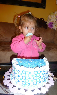 There wasn't any doubt when last night they first started picking up the blue sprinkles spread on the top of the cake and the tiny fondant flowers that I put around the top border. It was such a mess! But that was the point - to make the kids happy!